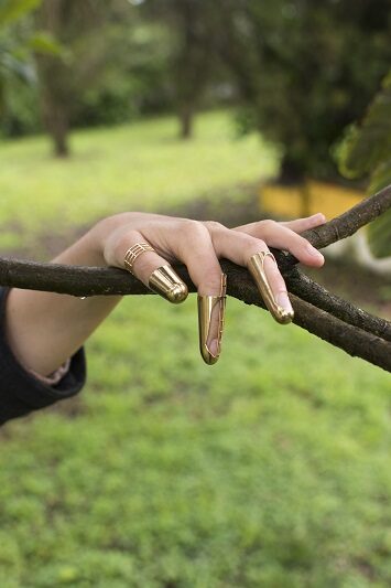 「KIREI」は、次の三つから構成されるアクセサリー・コレクションです。ゴミ拾いのための指輪「Litter-Rings」、身の回りをケアするためのブレスレット「Dust-Bracelet」、顔や体をきれいにするためのネックレス「Pollution-Necklace」。これらのアクセサリーを通し、掃除について、また、清潔さが個人や周りの環境にもつ意味について考えます。