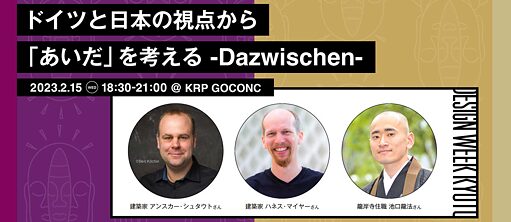 デジタルとアナログ、ハイテクと手仕事、都会と農村など、様々な「あいだ」についての活動を中心に世界的に活動するドイツ人建築家たちが、京都・龍岸寺住職で、「ドローン来迎仏」など現代に求められる新たな仏教の活動に取り組んでいる池口龍法氏と「あいだ」について語り合います。
