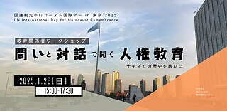 今年は、ホロコースト国際デーの前日にあたる1月26日、ゲーテ・インスティトゥート東京にて、教育関係者の皆さまとともに「問いと対話で開く人権教育」と題したワークショップを開催します。本ワークショップでは、ナチズムの歴史を題材に「問いづくり」と「哲学対話」の実践を通じて、人類の負の歴史をどのように学び、教育に活かすかを皆さんと考えます。