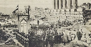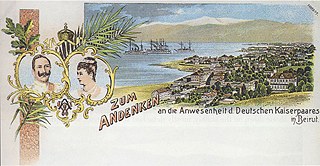 • Postkarte vom Besuch des Kaiserpaars in  Beirut 1898 Repro aus: Wolf Dieter Lemke: The Kaiser in Lebanon: a Collage in BTS-Band Nr. 69, page 51 (Baalbek.Image and Monument, 1998)
