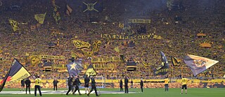 Die „Gelbe Wand“ – das sind 25.000 Stehplätze voller Dortmund-Fans Foto (Detail): © picture alliance/Foto Huebner Foto (Detail): © picture alliance/Foto Huebner