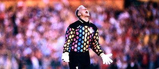 Jahrzehntelang ein völlig normaler Anblick: die deutsche Fußballnationalmannschaft im Tonstudio - hier mit Udo Jürgens im Dezember 1989. © picture-alliance/ dpa/dpaweb | Marcus Thelen © picture-alliance/ dpa/dpaweb | Marcus Thelen