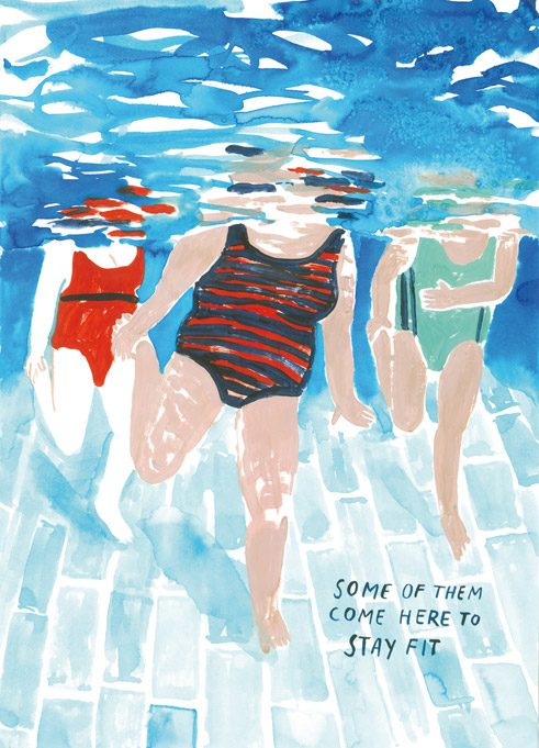 In Anna Vaivares Swimming Pool folgen wir dem Alltag einer Putzfrau und ihrer inneren Monologe. Sie erzählt über die Aufgaben und Pflichten ihrer Arbeit und über die Menschen, denen sie tagtäglich – von diesen unbemerkt – begegnet. Die Geschichte, in der eine ruhige, berückende Atmosphäre herrscht, die jedoch niemals ins Düstere und Deprimierende abgleitet, nimmt ein unerwartetes Ende. Anna Vaivares künstlerisches Arsenal ist groß: energische, kräftige Farben, ein scharfer Pinselstrich mit Gouache und Aquarellfarben, originelle Perspektiven und eine emphatische Beobachtungsgabe. All das findet sich auch in ihren anderen Comics, die nicht selten autobiographische Verweise enthalten und menschliche Beziehungsprobleme thematisieren.