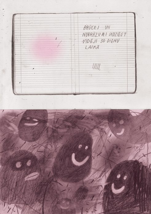 Zane Zlemeša malt, zeichnet und gestaltet grafische Werke in den verschiedensten Techniken. Sie studiert Grafik im Magisterstudiengang der Lettischen Kunstakademie. In ihren detailliert gestalteten Erzählungen finden sich oft meisterhaft gezeichnete kleine Geheimnisse und Paradoxien. Zanes Comics werden in der Comic-Anthologie š! sowie in anderen internationalen Publikationen veröffentlicht. Zane nahm an Gruppenausstellungen in Europa und Japan teil. Im Jahr 2012 gewann sie den ersten Preis im Zeichenwettbewerb „Menschliche Figur“ der belgischen KoMASK. 2014 erlangte sie den ersten Preis im lettischen Comicwettbewerb „Körperfabrik“ („Ķermeņa fabrika“).