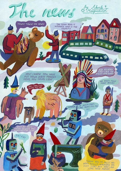 Akvile Misevičiūtė ist eine der aktivsten litauischen Comicautorinnen. Ihr breites Betätigungsfeld reicht von kommerziellen Illustrationen bis hin zu selbst verlegten Comic-Heften und Bildern, die auf Ausstellungen gezeigt werden. Die Inspiration für ihre Werke findet Akvile in der Natur, in Träumen, Erlebnissen und heimlich belauschten Gesprächen. Für ihre Comic-Zeichnungen verwendet sie häufig Acrylfarben, die jede Seite ihrer Geschichten zu einem eigenen Kunstwerk machen. Oft finden sich in Akviles Comics Geschichten über Aktivisten, z.B. Naturschützer, die gegen die Umwelt verschmutzende Großkonzerne kämpfen. Trotz ihrer direkten und klaren Botschaften ist Akvile eine romantische Kämpferin. Nicht selten finden ihre Geschichte ein magisches Ende: Menschen und Tiere sprechen dieselbe Sprache, gehen zusammen gegen Übeltäter vor und amüsieren sich anschließend gemeinsam im Skatepark.Akvile Misevičiūtė verfügt über ein Bakkalaureat der Kunstakademie Vilnius und einen Magisterabschluss im Fach „Comic und Illustration“ der LUCA School of Arts in Brüssel. Sie lebt und arbeitet in Vilnius, Litauen.