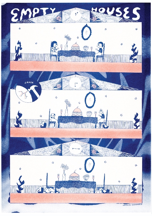 Empty Houses filled with imaginary people.Spaces shining with lively colors