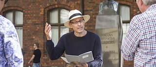Deutsche Spuren Lettland © Goethe-Institut Riga Die Verbindung zwischen der lettischen und deutschen Geschichte geht bis ins Mittelalter zurück. Wer sich für die Spuren interessiert, die diese Verbindung in Lettland hinterlassen hat, der wird bei diesem Dossier fündig. Kunst und Kultur Deutsche und Lett*innen, heute und damals Technik und Innovation Architektur und Stadtbild Kunst und Kultur © Goethe-Institut Riga; Foto: Alexander Welscher Münchhausen Dunte: Wo der „Lügenbaron“ die Liebe seines Lebens fand Die Legenden, Abenteuer und Märchen des „Lügenbarons“ Münchhausen kennt wohl fast jeder. Einige davon soll er – keine Lüge – in Dunte erlebt haben. Sechs Jahre lebte er dort mit seiner ersten Frau. Foto: Goethe-Institut 300 Jahre Münchhausen Weltberühmter Aufschneider Ach, den gab es wirklich? Seine Lügengeschichten sind weltweit bekannt. Doch Baron von Münchhausen ist nicht nur Kunstfigur und Filmheld, sondern eine historische Person. 2020 feiert der fabulierende Adlige seinen 300. Geburtstag. Daran wird auch in Lettland erinnert. © Alexander Welscher Unterhaltung Heinz Erhardt: Der immer heitere Herr aus Riga Unvergessener Komiker und begnadeter Wortakrobat – auch Jahrzehnte nach seinem Tod bringt Heinz Erhardt die Deutschen noch zum Lachen. Seine Kindheit und Jugend in Riga war aber nicht immer lustig. © Katrin Wolschke Märchen In Riga zu Hause: Die Bremer Stadtmusikanten Im Märchen vertreiben sie Räuber aus ihrer Waldhütte. In Rigas Altstadt verjagen die Bremer Stadtmusikanten den Geist des Kalten Krieges. Ihre Skulptur ist bei Touristen aus aller Welt beliebt. © Alexander Welscher Musik Ein einst unbekannter Kapellmeister: Richard Wagner Es war nur ein kurzes Gastspiel, das Richard Wagner vor knapp 200 Jahren als Kapellmeister gab. Er wollte lieber in die große weite Welt. Dennoch war sein Aufenthalt prägend – für ihn und Riga. © Richard-Wagner-Gesellschaft Riga Wagners Rückkehr nach Riga Es war nur ein kurzes Gastspiel, das der junge Richard Wagner einst in Riga gab. Doch der Aufenthalt hinterließ einen bleibenden Eindruck beim Komponisten – besonders das Deutsche Stadttheater. Deutsche und Lett*innen, heute und damals © Alexander Welscher Geschichte Hirschenhof: Deutsche Kolonie in Lettland Ende des 18. Jahrhunderts folgten deutsche Auswanderer dem Ruf Katharinas der Großen und suchten ihr Glück in Lettland. Manche Hirschenhofer wurden sogar berühmt. © Alexander Welscher LiteraTour Matthias Knoll: Der Literatur-(Ver)Führer Der deutsche Lyriker und Übersetzer Matthias Knoll hat einen Schatz an lettischer Literatur angehäuft, den er nur allzugern mit anderen teilt. Dafür geht er ganz eigene Wege – mit seiner „LiteraTour“. © Arina Soltnzeff Tiere Ein Heim für Tiere Engagement für Tiere in Not: Mit viel Leidenschaft setzt sich Mirko Höhnisch in Madona für das Wohl von Hunden und Katzen ein. © Astro’n’out Musik Māra Upmane-Holšteine: Europäischer Indie-Rock aus Riga Hit-Alben, ausverkaufte Tourneen, Charterfolge und Auszeichnungen: Die Band „Astro’n’out“ spielt in der lettischen Musikszene ganz oben mit – nicht zuletzt dank Frontfrau Māra Upmane-Holšteine. © Goethe-Institut Musik Westbam und der Sound der Freiheit Nicht erst die Scorpions brachten musikalisch den „Wind of Change". In Lettland legte bereits Ende der 1980er Jahre der Techno-DJ Westbam auf - und öffnete damit einen Spalt weit den Eisernen Vorhang. © Kurzemes vārds Fußball Oliver Kahn: Welttorhüter und „Viertel-Lette“ Wer ist der wohl berühmteste lettische Fußballspieler? Die Antwort ist Māris Verpakovskis. Doch beinahe hätte sie auch Oliver Kahn lauten können. © Alexander Welscher Aufklärung Garlieb Merkel: Aufklärer und Befreier der Letten Mit der deutschen Bundeskanzlerin ist er weder verwandt noch verschwägert. Und für viele Letten wegen seines Einflusses auf das nationale Erwachen ohnehin der viel wichtigere Deutsche: Garlieb Merkel. © Steffen Kugler Reformation Petrikirche: Wiege der Reformation im Baltikum Martin Luther ist nicht nur für Deutschland von großer Bedeutung – auch für Lettland waren die Ideen des Kirchenrebellen prägend. Erstmals zu vernehmen war seine Glaubenslehre in der Petrikirche. © Valmiermuižas alus darītava Kulinarik Valmiermuiža: Deutsche Braukunst für den lettischen Gaumen Bierbrauer aus Deutschland haben im Ausland einen guten Ruf – auch in Lettland. Dort setzt die kleine Brauerei Valmiermuiža mit Erfolg auf einen Bierkünstler aus Baden. Bernhard Ludewig © Goethe-Institut Handel Schwarzhäupterhaus: Das erfüllte Vermächtnis Nach dem Zweiten Weltkrieg dem Erdboden gleichgemacht, ist das Schwarzhäupterhaus heute wieder das Schmuckstück von Riga. Hinter der schönsten Fassade der Stadt trafen sich einst deutsche Kaufmänner. © Katrin Wolschke Aufklärung Gotthard Friedrich Stender: Aufklärer, Sprachforscher, Erfinder Jedem lettischen Schulkind ist der „Alte Stender” ein Begriff. Das Werk des Universalgelehrten ist vielseitig – und wurde stark durch seine Zeit in Deutschland geprägt. Im Herzen aber blieb er Lette. © Ikšķiles tūrisma informācijas centrs Religion Kirche zu Uexküll: Wirkstätte des „ersten Apostels von Lettland“ Die Kirche zu Uexküll ist wohl die erste und älteste deutsche Spur in Lettland. Dort nahm vor mehr als 800 Jahren die Christianisierung des Baltikums ihren Anfang. Technik und Innovation © MINOX GmbH Fotografie Walter Zapp und seine Minox - Spielzeug für Spione Walter Zapp erfand mit der in Riga produzierten Minox die Kamera von Agenten und Spionen. Doch behagt hat dem deutschbaltischen Tüftler der vom Geheimdienst umwitterte Mythos seiner Erfindung nie. © Andris Biedriņš Eisenbahn Bānītis - Große Fahrt auf schmaler Spur Einer der bekanntesten Zungenbrecher im Lettischen ist „Šaursliežu dzelzceļš“ – Schmalspurbahn. Wer ihn nicht unfallfrei aussprechen kann, darf dennoch mitfahren – in der letzten verkehre