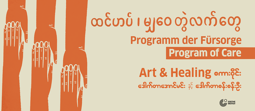 Die erste Veranstaltung unserer Projektserie mit dem Titel "Programm der Fürsorge" war eine "Orientierungssitzung für Kunst und Heilung". Diese Sitzung wurde von Dr. Aung Min (Mentales Gesundheitslehrer, Praktiker, Kunsttherapeut, Drehbuchmentor und Filmemacher) und Dr. San San Oo (Psychiaterin, EMDR-Psychotherapeutin und Künstlerin) aus der Aung-Klinik geleitet.