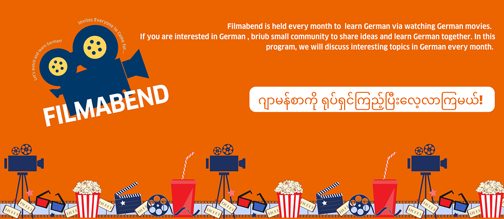 Goethe-Institut Myanmar organisiert einmal pro Monat einen Filmabend für alle, die sich für die deutsche Sprache, Kultur und Tradition interessieren. Dies ist außerdem eine tolle Möglichkeit für diejenigen, die gerade Deutsch lernen ihre Sprachkenntnisse und Sprachverständnis zu verbessern, indem sie sich deutsche Filme anschauen. Jeden Monat wird ein neuer Film gezeigt. Wer Interesse hat, kann an jedem Filmabend kostenlos teilnehmen.