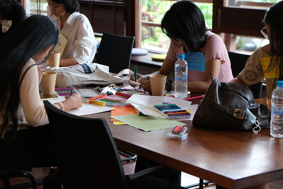 ©Goethe-Institut Myanmar / TheeOoThazin ထင်ဟပ်၊ မျှဝေတွဲလက်တွေ Live with Art: Reflect yourself through art for women ‘‘ဒီ workshop လေးကတော့ ကျွန်တော့်အတွက်ကော၊ တက်ရောက်သူ အမျိုးသမီးများအတွက်ပါ အမှတ်တရ ဖြစ်စေတဲ့ workshop လေးတစ်ခုပါပဲ။ ၅ ရက်တာကာလမှာ အမျိုးသမီး ၁၀၀ နီးပါး တက်ရောက်ခဲ့ပြီး သူတို့တွေရဲ့ ပျောက်ဆုံးလုဖြစ်နေတဲ့ identity ကို အနုပညာကို အရင်းခံပြီး ပြန်လည်ရှာဖွေနိုင်ခဲ့ကြပါတယ်။ ဒီ workshop လေးတက်ပြီး ကိုယ့်ကိုယ်ကိုယ် ပြန်လည်တွေ့ရှိသွားတယ်၊ ကိုယ့်ရဲ့ အရှိတရားကို လက်ခံနိုင်လိုက်တယ်၊ အားအင်အသစ်နဲ့ ရှေ့ဆက်နိုင်လာတယ် ဆိုတဲ့စကားသံတွေ ပြန်ကြားရတဲ့အခါ ကျွန်တော့်အတွက်တော့ ဘာနဲ့မှ တန်ဖိုးဖြတ်မရတဲ့ ပီတိဆေးကို ရရှိပါတယ်။ ဒီလို ပွဲလေးတွေကို စီစဉ်ပေးတဲ့ Gothe-Institut Myanmar ကိုလည်း တကယ်ကို ကျေးဇူးတင်ရပါတယ်လေ။’’ စုထွေးအောင် ©Goethe-Institut Myanmar/Sophia Live with art: Reflect yourself through art for women ©Goethe-Institut Myanmar/Sophia Live with art: Reflect yourself through art for women ©Goethe-Institut Myanmar/Sophia Live with art: Reflect yourself through art for women ©Goethe-Institut Myanmar/Sophia Live with art: Reflect yourself through art for women ©Goethe-Institut Myanmar/Sophia Live with art: Reflect yourself through art for women