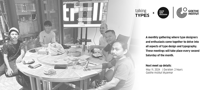 The basics to make Burmese font: concept, techniques, software skills and typography knowledge are tailored to give interested individuals in Myanmar font making Course, organized by Goethe-Institut Myanmar and Talking Types designers. The course was led by experienced local type designers Ko Zin Bo and Ko Htun Naung, and supported by Ko Htet Aung Khine.