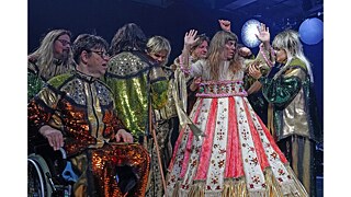 Die Inszenierung von proteus 2481 ist ein lautes, buntes Fest mit einem inklusiven Ensemble „Die Blindgänger", eine Theatergruppe, bestehend aus blinden und sehbehinderten Schauspieler*innen, die die Satyrn darstellen.