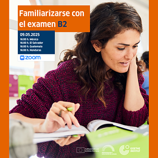 Im Rahmen des Projekts Vorintegration bietet Ihnen das Goethe-Institut Mexiko eine kostenfreie Informationsveranstaltung zur Prüfung „B2“ an. Während der Veranstaltung haben Sie die Möglichkeit, Fragen zum Prüfungsformat zu stellen und sich über die Anmeldung sowie Ablegung der Prüfung zu informieren.
