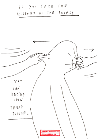 La semana culminó con un laboratorio grupal de ideas, observado por la artista gráfica Johanna Benz, que exploraba las capas del trauma y la transformación que se hicieron evidentes al abrirse paso por Berlín. Benz representó observaciones, anécdotas y revelaciones en una forma que canalizó las poderosas ideas de los becarios.