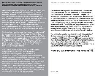 Como un indígena de ascendencia Huichol, cuya familia se vio impactada por legislación de odio como la Ley de Repatriación Mexicana (deportación masiva de nativos americanos, mexicanos y mexico-estadunidenses de los Estados Unidos entre 1929 and 1936) disfrazada de estrategias de alivio económico, esta reflexión es un momento para que haga una pausa y analice dos trayectorias: la época pre-holocausto en Alemania y lo que está sucediendo ahora en los EE.UU. A partir de solo una muestra limitada de mi visita a Berlín junto con mi investigación extensiva de toda la vida, experiencias y análisis de la supremacía blanca, aliento a la gente a leer esta publicación para entender esta reflexión desde la perspectiva de un indígena que vive en el Sur de California.