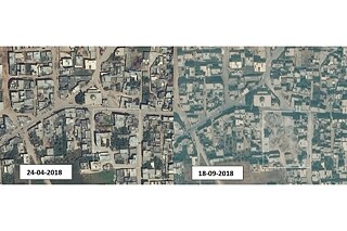 Zardana antes y después de los ataques aéreos en 2018