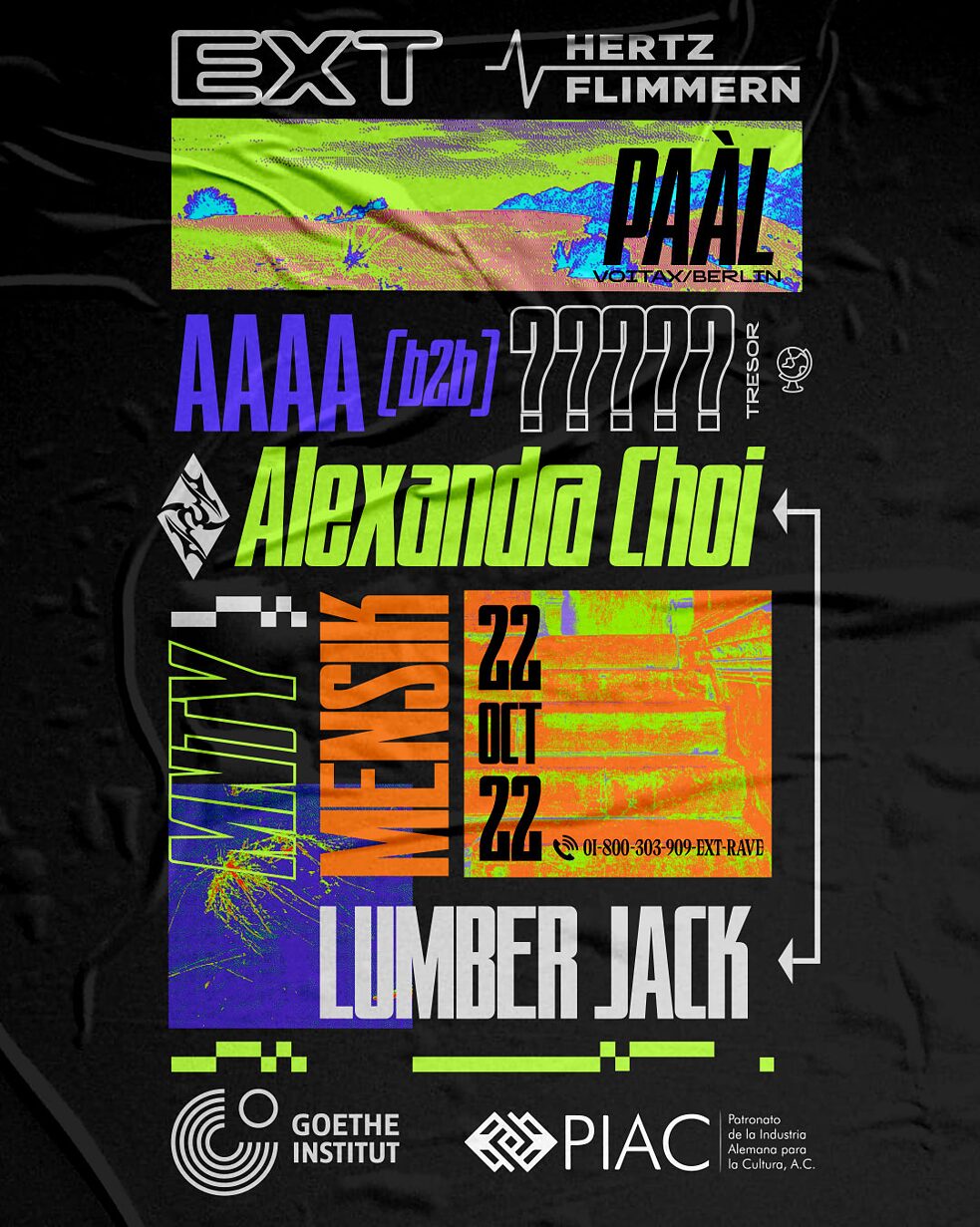 EXT. es una plataforma emergente centrada en la vida nocturna; a lo largo de los últimos cinco años han reconfigurado la forma de crear experiencias en el circuito DIY de la Ciudad de México. Combinando elementos como actos musicales de vanguardia, espacios inusuales y una escenografía creativa (iluminación, máquinas de humo, rayos láser, etc.) que se salen de la norma, atrayendo así a un público más joven y curioso, expandiéndose tanto en el mercado nacional como en el internacional.