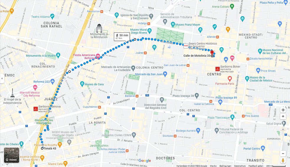 La ruta de 4 km. comenzará en el Goethe-Institut Mexiko a las 11:30hrs dirigiendonos por Av. De Reforma hacía la calle de Motolinia 33 en el Centro Histórico. Aquí tocará se sumará Ipek, DJ y Activista Queer de Berlin/Estambul entre 15:00 y 17:00hrs al LineUp junto con nuestros amix de Fixxion en agradecimiento y apoyo a la comunidad LGBTQIA+.