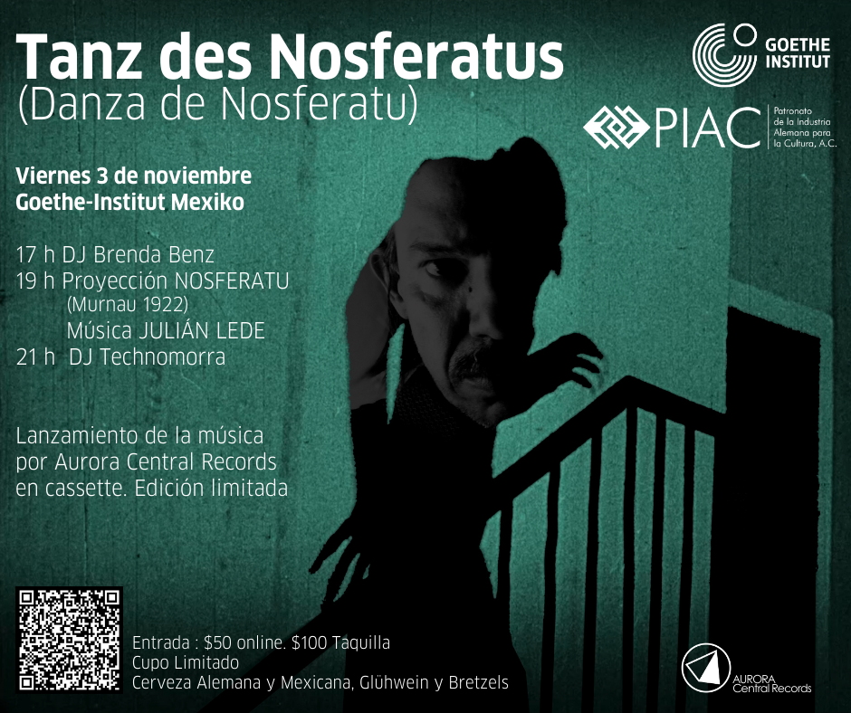 El Goethe-Institut Mexiko y el Patronato de la Industria Alemana para la Cultura presentan la proyección de la primera película de vampiros de la historia del cine: NOSFERATU (1922) largo silente alemán dirigido por F. W. Murnau. La película se basó en la novela DRÁCULA de Bram Stoker y es además una de las primeras representantes del cine de terror.