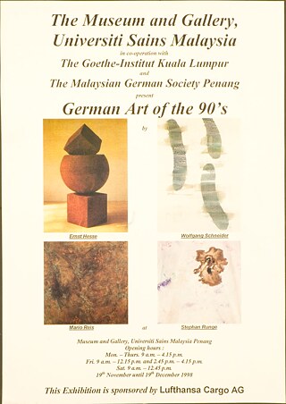 "Germany in Mind" - eine von DaimlerChrysler (heute Mercedes Benz) gesponserte und vom Goethe-Institut organisierte Austellung, die Malaysischen Kunststudent*innen die Gelegenheit gab, nicht nur Preise zu gewinnen, sondern auch ihre persönliche Assoziation zu Deutschland zum Ausdruck zu bringen. Die Ausstellung wurde in Kuala Lumpur, Penang und sogar in Suttgart gezeigt.