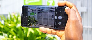 Hands holding a smartphone with a picture of a house © Goethe-Institut Lagos, Foto: Tope Asokere