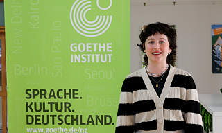 "Ko Eve Walter ahau, ā, i ako ahau i te reo Tiamana mai i te Tau 9 ki te kura tuarua.I whakawhiti au hei tauira ki Tiamana, i whiwhi au i ētahi hoa pūmau, i mārama au i tētahi ahurea hou, ā, kei te mahi au ināianei ki Pōneke mō te Kāinga Māngai Kāwanatanga o Tiamana."