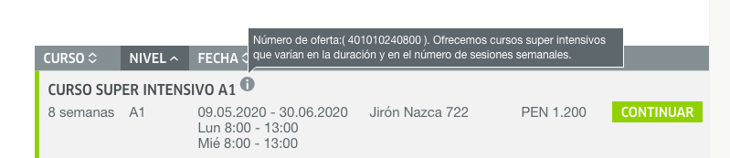 Recuerde que este formulario sólo debe ser llenado por alumnos nuevos sin conocimientos del idioma o alumnos repitentes del nivel A1.1 o A1/1. Recuerde que la inscripción será presencial en Jr. Nazca 722 - Jesús María, Lima. El proceso de inscripción para usted se encuentra en Matrícula al Detalle: "Proceso Matrícula Principiantes"