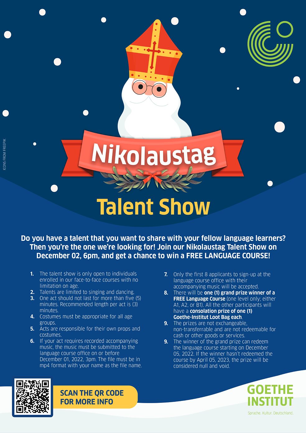 Get a chance to win a free Language Exam when you join our Nikolaustag 2022 Raffle Draw for Goethe-Institut Manila students!