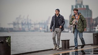 At the heart of My Brother Simple are two endearing characters, Ben (Frederick Lau) and Barnabas (David Kross), who, after the sudden death of their mother, have no one to turn to but themselves. All his life Ben has looked after his brother, whom he affectionately calls Simpel, a twentysomething with a developmental disability, a grownup man with the faculties of a three-year-old boy. Ben feeds him, washes him, plays with him: He is with him every step of the way. Now he is told that Simpel needs to be put into a home where he can be taken care of much better, a decision made at the behest of their father, who has abandoned them. But Ben cannot just let his beloved brother go – and Simpel cannot part with him either – they are one another’s best friend, best brother, and best companion. And so they decide to run away and travel all the way to Hamburg to find their father and persuade him to change his mind. Their escape is a mix of adventure and tragedy, a journey filled with bittersweet encounters that only make them stronger and closer to each other.