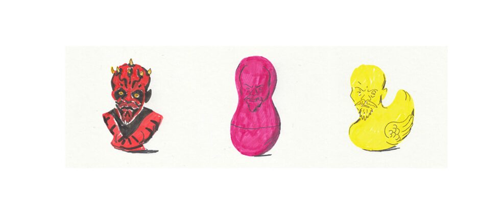 Begleitend zu den Statements der Künstlerinnen und Künstler skizziert Sebastian Lörscher deren Kunstwerke, von denen viele auf die Provokation der verkrusteten Strukturen abzielen: Man sieht Pikachus mit Leninkopf, halbnackte Männer vor dem Kreml oder sowjetische Symbolik in Toiletten. Die Zeichnungen Lörschers sind wie bereits in seinem Reisebuch „Making Friends in Bangalore“ dominiert von skizzenhaften Strichen, leichten Farbgebungen mit Bunt- und Filzstiften, die Akzente setzen. Dies wird insbesondere deutlich in der zweiten Episode, die Lörscher präsentiert: seinem Besuch auf einem Festival junger Subkulturen in Nowosibirsk. Das Nebeneinander von westlicher Popkultur und russischer Realität fängt der Zeichner in fast schon abstrakt-expressionistischen Zeichnungen ein. Cosplayer, Gothics, Weltraumsuperhelden und russischer Techno treffen auf die martialische Präsenz des Militärs: „Inmitten des bunten Trubels posieren gutgelaunte Soldaten für Selfies, zeigen wie man Maschinengewehre auseinanderbaut und werben mit Schießständen und Messerkampfspielen für das russische Militär.“