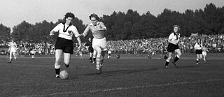Szene aus dem ersten Frauenfußball-Länderspiel Deutschland - Niederlande am 23.09.1956 im Mathias-Stinnes-Stadion in Essen