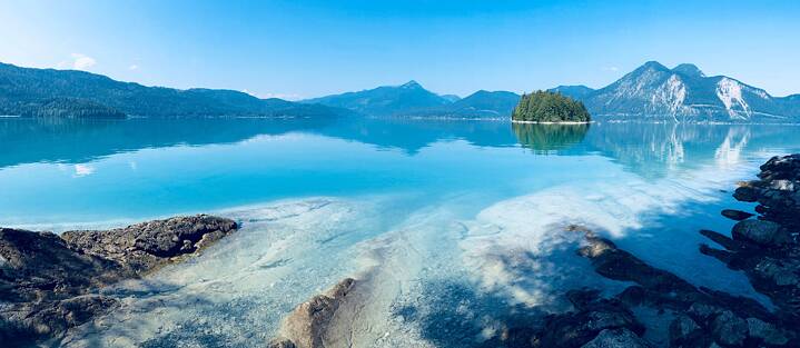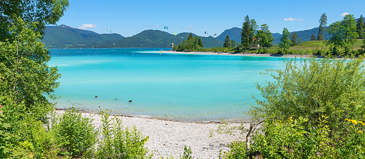 A Caribbean panorama in the Alps, how is that possible? It can hardly be thanks to the weather, and is definitely not because of the easy ocean access. And yet it is not without good reason that Lake Walchensee is dubbed the “Bavarian Caribbean”. So why not pop on your flip flops and your shades – and let’s take a look at what our local Caribbean has to offer.