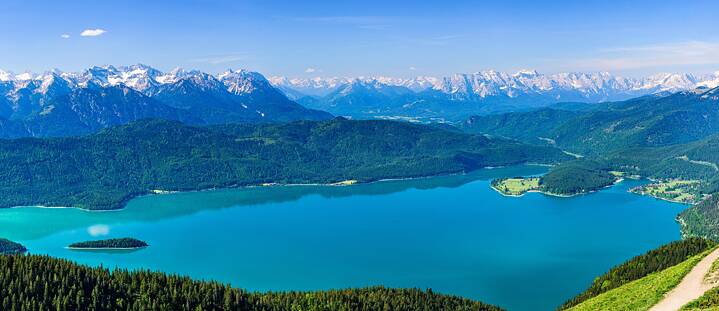 Lake Walchensee is one of the most picturesque corners of Bavaria. Situated in the district of Bad Tölz, it is one of the largest (16 square kilometres) and deepest (190 metres) Alpine lakes in Germany. Thanks to its natural beauty, Lake Walchensee is the perfect place for a whole host of leisure activities: hikers for example can explore the St James Way that runs along the lake, which is part of the famous European pilgrimage trail to Santiago de Compostela. The route offers spectacular vistas of the lake and the surrounding mountains – an absolute must for hiking enthusiasts.