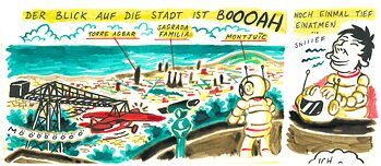 In 2013, Calle Claus was a part of the ‘Comic Transfer’ programme organised by the Goethe-Institut and travelled from Hamburg to Barcelona. He felt most comfortable in the Catalonian capital when he was able to escape the hordes of tourists flooding the city.