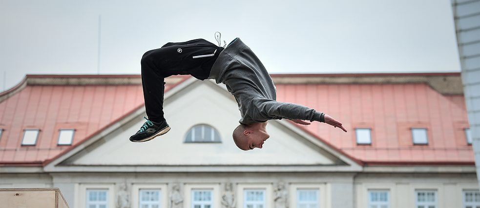 Parkourläufer – Traceure genannt – erkunden ihr Umfeld auf neue Art: Sie meiden die von Architektur und Städtebau vorgegebenen Wege und suchen neue Methoden der Fortbewegung, bei denen sie die Umgebung als Werkzeug nutzen. Entstanden ist Parkour Anfang der 1990er-Jahre in den Vorstädten von Paris, in Gang gesetzt von einer Gruppe von Freunden rund um den Franzosen David Belle. Was als spielerischer Hindernislauf begann, entwickelte sich vor allem im städtischen Raum weiter, wo Zäune, Mauern und sogar Fassaden mit einbezogen werden. Nahezu in jeder Stadt gibt es mittlerweile aktive Traceure, die das jeweilige Gelände neu erleben möchten.