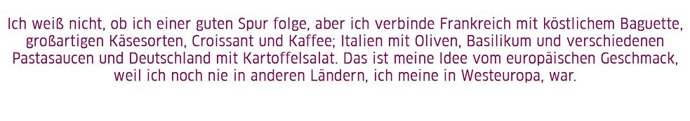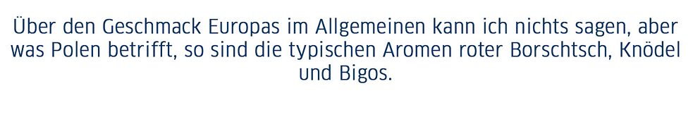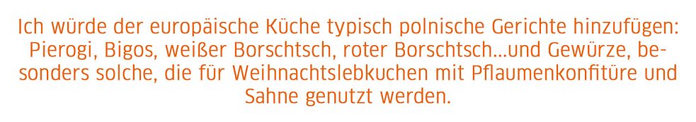 Für die Europaküche Wrocław haben wir Menschen in und aus Polen dazu eingeladen, ihre Eindrücke von Europa über Zutaten und Geschmack zu erzählen. Wie schmeckt Europa für sie? Und welche Zutat würden sie gerne hinzufügen? Untenstehend können Sie die Antworten lesen. Sie bilden die Basis für die entstandenen Kurzgeschichten von Priya Basil und Matt Aufderhorst, sowie für die Arbeiten von 5 Keramikkünstler*innen aus Wrocław: Katarzyna Koczyńska-Kielan, Magdalena Maros, Katarzyna Mazurek, Alicja Patanowska und David Żynda.