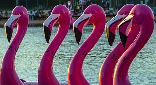 Markus Söder wollte einen Strand. Er bekam den Strand – und eine ganze Flotte Flamingo-Tretboote.