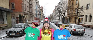 Das ist Gostenhof: Zwischen Schankwirtschaft und 1.-Mai-Graffiti präsentiert eine Jugendliche ihre T-Shirt-Kollektion „Ich liebe Goho“.