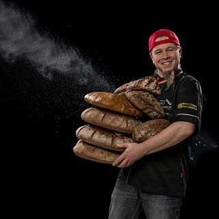 Nein, Axel sieht nicht aus wie ein typischer Bäcker und schon gar nicht wie ein anerkannter Brotsommelier. Er hat schulterlange, zu einem Pferdeschwanz gebundene blonde Haare und einen dünnen langen Bart, sein rotes Basecap trägt er mit dem Schirm nach hinten, und auf seinem schwarzen T-Shirt prangt ein großes Iron-Maiden-Logo. Denn Axel ist auch ein großer Heavy-Metal-Fan und spielt in seiner Freizeit Schlagzeug in der Band Serpent Smile.