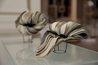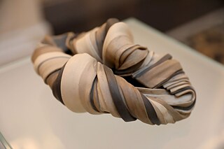 Für das Formenspiel mit diesem Konzept habe ich Tonmassen in verschiedenen Farben verwendet, die diese Vielfalt widerspiegeln und dem Geschmack Europas gleichzeitig eine einheitliche Gestalt geben sollen. Für mich stehen diese Tonmassen für die erwähnte Komplexität und Vielfalt der Geschmäcker, die ich mit diesem künstlerischen Experiment in eine einheitliche Form bringen wollte. Die Farben stellen ebenfalls einen direkten Bezug zu dem her, was die Erde hervorbringt. Jedes der Keramikbänder wird auf individuelle Weise verarbeitet. Die Werke erhalten durch diese Bänder eine sinnliche Qualität. Der Gesamteindruck der Körperlichkeit, der Haptik dieser Formen, ist meiner Arbeit mit der Drehscheibe zu verdanken und entsteht durch die Berührung der Masse und das unmittelbare Einwirken auf ihre Form.