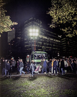 Auch in den Techno Clubs, für die das wiedervereinte Berlin berühmt wurde, wird in dieser Nacht der Jahrestag des Mauerfalls gefeiert: etliche Clubs haben sich unter dem Motto „European Club Night“ den Feierlichkeiten angeschlossen. In einem von ihnen begegne ich Annika. Leider darf ich sie nicht fotografieren, weil dies in den meisten Berliner Clubs streng verboten ist. Sie fragt mich nach meiner Arbeit, und was die Menschen mir alles erzählt haben. „Das ist kompliziert, weißt du. Denn ich war zwar noch zu jung, um selbst auf der Mauer zu stehen, aber ich habe beobachtet, wie sich der Fall der Mauer auf das Leben meiner Eltern auswirkte. Ich komme aus einer Stadt im Osten Deutschlands. Mein Vater fuhr damals gleich nach Berlin, um beim Fall der Mauer dabei zu sein. Wenig später gab es schon nichts mehr, zu dem er zurückkehren konnte, denn die Firma, in der er gearbeitet hatte, war geschlossen worden. Seine Niedergeschlagenheit hing wie eine dunkle Wolke über unserer Familie. Wir freuten uns zwar über unsere Freiheit, doch wir lernten schon bald, was der Preis für diese Freiheit war, als alles um uns herum den Bach runterging. In dem ganzen Gerede über die Wiedervereinigung fehlen die Stimmen all jener, die diese Freiheit mit dem Verlust ihrer Arbeit bezahlten. Meine Heimatstadt ist heute wie ausgestorben.“Ich beschließe, den letzten Abend an der Glienicker Brücke zu verbringen, der sogenannten „Agentenbrücke“. Erst nach Sonnenuntergang erreiche ich die kleine Gedenkveranstaltung. Wenige Minuten vor achtzehn Uhr wird in der Mitte der Brücke ein rotes Band gespannt, dass die einstige Grenze symbolisieren soll, und anschließend zu den Klängen der Ode an die Freude wieder entfernt. Ich versuche trotz des Gedränges, ein paar Bilder von der Veranstaltung zu machen. Als die Menge sich langsam wieder auflöst, frage ich John, wie er sich an die Öffnung der Grenze erinnert. „Die Proteste gingen immer weiter. Irgendwann musste die Mauer fallen, doch lange Zeit tat sich nichts, bis schließlich alles ganz schnell ging. Ich habe den Fall der Mauer damals im Fernsehen erlebt. Am nächsten Morgen stieg ich in mein Auto und fuhr los, um nachzusehen, ob die Grenze auch wirklich offen war. Ich passierte den Grenzübergang Drewitz und fuhr nach West-Berlin. Plötzlich wurde mir klar, dass ich gar nicht wusste, wo ich hinfahren sollte, denn ich hatte keinen Stadtplan oder etwas Ähnliches dabei. Die einzige Adresse, an die ich mich erinnerte, war der Kurfürstendamm, also fuhr ich dorthin, um mit eigenen Augen zu sehen, wie es dort aussah.“