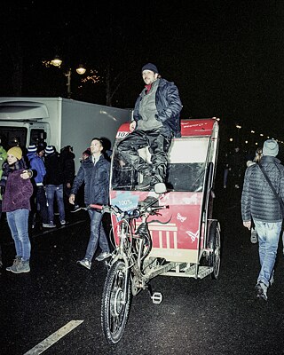 Auf dem Weg zum Konzert am Brandenburger Tor gehe ich noch kurz in die Kirche. Woran erinnert man sich hier? „An vor Glück weinende Menschen. An wiedervereinte Familien. An die vielen Trabanten, die Tag für Tag durch meinen Ort fuhren.“ Alessandro arbeitet hier, er verkauft Lampions. „An die Wiedervereinigung kann ich mich nicht erinnern, dazu bin ich zu jung. Aber ich weiß noch, wie sich dieses Ereignis auf meine Familie auswirkte, denn mein Vater und ich arbeiteten im Zirkus. Die Mauer war noch gar nicht richtig offen, da fuhren wir schon in den Osten, weil die Menschen uns dort noch nicht gesehen hatten. Heute kann man die ehemalige Grenze nur noch im Fernsehen sehen.“ Das Gedränge wird dichter, je näher ich dem Brandenburger Tor komme. Mein Blick fällt auf eine Styropor-Nachbildung der Mauer mit einem Durchbruch in Form eines Herzens, vor der man sich fotografieren lassen kann. Hwira bemerkt meinen Blick und bittet mich, ein Foto von ihm zu machen. „Ich bin nur zufällig ein paar Tage auf Geschäftsreise in Berlin. Die Energie hier ist unglaublich, aber es fällt mir schwer, mir vorzustellen, dass Deutschland, als ich geboren wurde, noch ein geteiltes Land war. Ich bin älter als das wiedervereinigte Deutschland, das klingt schrecklich abstrakt.“ Als ich mich dem Eingang zum Konzert nähere, bemerke ich, dass immer mehr Menschen von dort wieder zurückkehren. Der Eingang, der sich aus einer Laune der Geschichte heraus fast genau dort befindet, wo einst die Mauer stand, wurde aus Sicherheitsgründen geschlossen. Ich versuche, an der Absperrung entlang zum nächsten Eingang zu gelangen. Der Tiergarten ist voller dunkler Wege, auf denen man sich leicht verirren kann. Silvia ist aus London nach Berlin gekommen, um hier ihren Geburtstag zu feiern. „Ich kann mich noch an die Nachrichten über die Proteste und den Fall der Mauer erinnern, als wäre es gestern gewesen. Wir sind zum ersten Mal in Berlin, wir sind extra zum Jahrestag des Mauerfalls hierherkommen, um zu sehen, wie sich diese Stadt in den vergangenen drei Jahrzehnten verändert hat. Kannst du uns mit dem Stadtplan helfen?“Schließlich stehen wir vor einem weiteren verschlossenen Tor. Ein Streifenwagen verkündet über Megaphon, dass dieser Eingang ebenfalls geschlossen wurde und dass wir es beim nächsten versuchen sollten. Trotzdem hört man in der Menge nur fröhliche Kommentare zur Absurdität der erneuten Konfrontation mit Zäunen und Mauern. Jemand ruft: „Die Mauer muss weg.“ Allgemeines Gelächter. Leo und seine Freundin geben den Versuch auf und machen sich auf den Rückweg. „Den Fall der Mauer kennen wir nur aus den Erzählungen unserer Eltern, wir sind noch zu jung, um uns daran zu erinnern. Die Mauer existiert immer noch in den Köpfen, auch wenn sie de facto verschwunden ist. Auch diese Mauer müssen wir einreißen, so wie die aus Beton vor dreißig Jahren.“ Ich reihe mich in den Strom der Menschen ein, die den Versuch aufgegeben haben, heute Abend noch zum Brandenburger Tor zu gelangen. Die Fahrer der Fahrradrikschas warten bereits auf die erschöpften Passanten. „Ob du es mir glaubst oder nicht, ich habe die Mauer von meinem Fenster aus gesehen. Ich lebte damals im Osten. Ich hatte meine Eltern nie gefragt, warum die Mauer da stand – für mich stand sie schon immer da und würde für alle Zeiten da stehen. Erst als die Mauer plötzlich fiel, wurde mir bewusst, dass ich mir nie Gedanken über ihre Funktion gemacht hatte. Woran ich mich bei meinem ersten Besuch im Westen erinnere? Dass ich mich schlecht angezogen fühlte.“