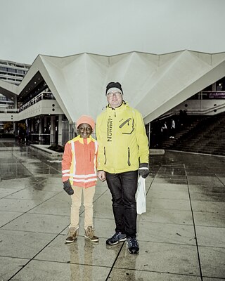 Der Tag des Mauerfall-Jubiläums beginnt mit leichtem Nieselregen. Als ich am Alexanderplatz ankomme, regnet es schon kräftiger. Ich frage Sascha und Benjamin nach ihren Erinnerungen. Sascha: „Der größte Erfolg war die Tatsache, dass sich vor unseren Augen eine Revolution abspielte – und die Art und Weise, in der sich diese Revolution abspielte. Ein Jahr später zog ich zum Studieren nach Berlin. Ich mietete mir eine Wohnung im ehemaligen Ost-Berlin und konnte in den folgenden Jahren selbst beobachten, wie die Gegend sich allmählich veränderte. Anfangs waren die Unterschiede sehr deutlich, später wurden sie immer subtiler.“ Auf der anderen Seite des Alexanderplatzes begegne ich Karl, der mich nach dem Weg fragt, und der mir, als ich ihn frage, wie er die Ereignisse jener Nacht erlebt hat, antwortet: „Wie wohl die meisten Leute, denen Sie heute begegnen: Ich habe alles nur im Fernsehen gesehen. Der größte Erfolg der Wende? Dass wir da sind, wo wir heute sind, in einem gemeinsamen Berlin. Dass ich Sie nach dem Weg fragen kann und dass Sie ihn mir zeigen können, obwohl ich nicht davon ausgehen kann, dass Sie hier geboren sind. Wir alle leben in Berlin unter einem Dach.“ Als der Regen ein wenig nachlässt, nutze ich die Gelegenheit, um noch schnell ein paar Orte zu besuchen, die sich mit der ehemaligen Grenze oder der ostdeutschen Vergangenheit verbinden. Anetha, eine schwedische Touristin, die gerade versucht hat, ein Selfie vor dem Checkpoint Charlie aufzunehmen, lässt sich gerne von mir fotografieren. „Es ist reiner Zufall, dass ich gerade heute in Berlin bin, ich wollte schon lange mal hierher kommen. Aber ich habe einige thematische Stadtführungen mitgemacht, und ich muss sagen, dass mich das Tempo der deutschen Wiedervereinigung sehr beeindruckt.“