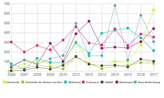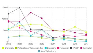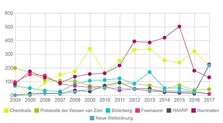 Die Anzahl der medialen Auftritte zum Thema klassischer Verschwörungstheorien hat sich während der letzten zehn Jahre verdoppelt. Über 95 Prozent davon entfallen auf das Internet.