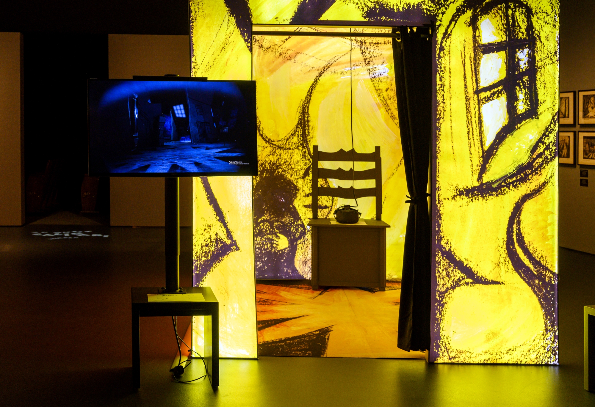 W pierwszej części instalacji, do której dekoracje stworzyli dwaj polscy malarze neoekspresjoniści: Zdzisław Nitka i Eugeniusz Minciel, obejrzeć można multimedialne prezentacje wykorzystujące unikatowe zbiory archiwalne Deutsche Kinemathek i ukazujące konstekt powstania filmu. Dwie pozostałe części mieszczą galerię obrazów i plakatów oraz salę kinową, gdzie kilka razy dziennie pokazywany jest odrestaurowany film Roberta Wienego z 1919 roku. Punktem centralnym instalacji jest film „Sen Cezara”, wykonany pionierską na skalę światową techniką wolumetryczną, z Arkadiuszem Jakubikiem i Jakubem Gierszałem w rolach głównych.