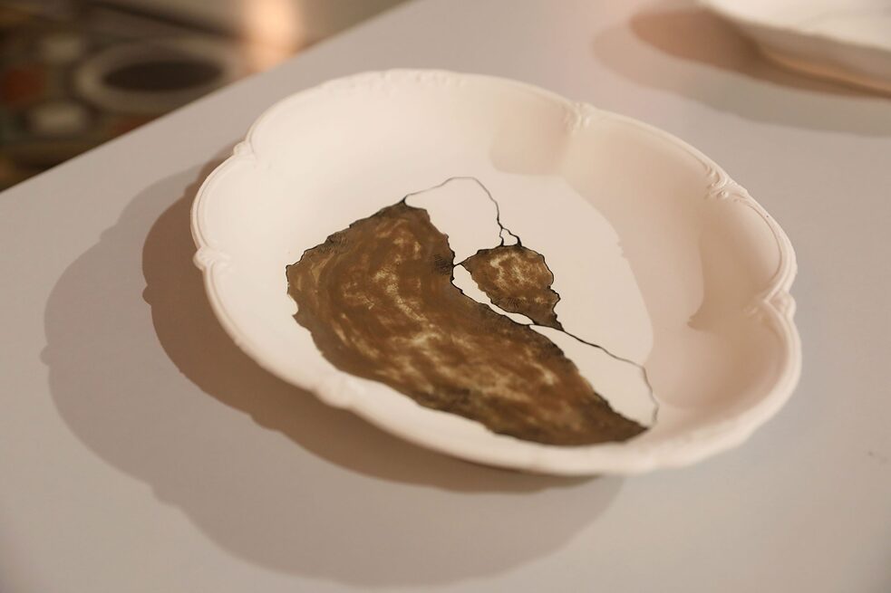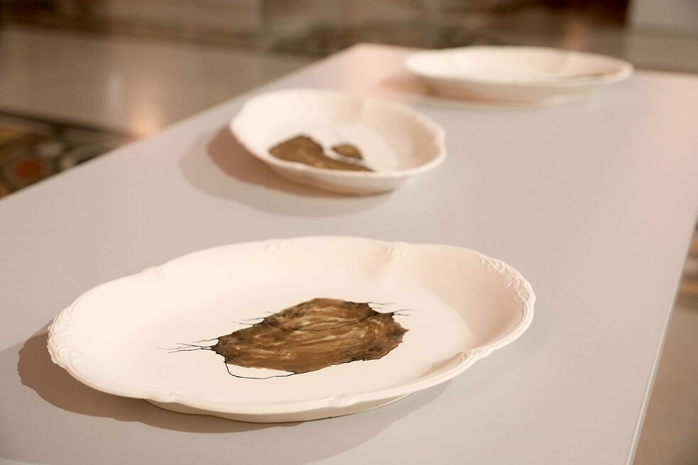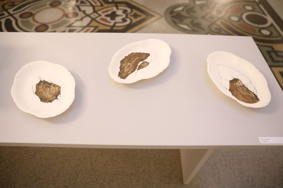 Zawarty jest w nich również element lokalności, ponieważ użyłam form pochodzących z nieczynnej już polskiej fabryki porcelany. Zależało mi również na tym, by znalazły się w nich elementy niespodzianki i dysonansu, bardzo tradycyjną formę zastawy stołowej ukazałam więc w bardzo niedoskonałej, surowej wersji – bez szkliwa, bez poprawek kształtu, połączoną z moimi rysunkami.