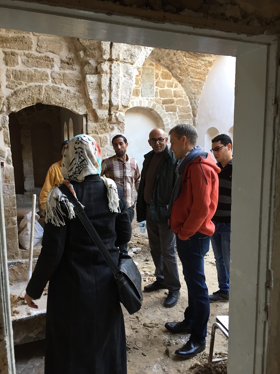 Bei einer Reise in den Gazastreifen im Jahr 2018 besuchten wir mit unserer Partnerin von Iwan, Nashwa Alramlawi, die Altstadt von Gaza-Stadt. Wir wurden dort auf ein stattliches Haus das bereits in Ruinen lag und dennoch eine bemerkenswerte Schönheit hatte, aufmerksam gemacht: Das ehemalige Haus der Al-Ghussein Familie. Das Haus, welches um 1800 erbaut wurde, ist heute vor allem durch die letzten Bewohner bekannt. „Zu Zeiten des Britischen Mandats über Palästina lebte in dem Haus der britische Konsul mit seiner Familie.“, berichtet Nashwa Alramlawi. Während das Dach des Hauses nicht mehr vollständig und das obere Stockwerk durchbrochen war, wurden die verschiedenen Bauschichten und damit das traditionelle Handwerk des Baus offenbart. Es stellt ein bemerkenswertes Exemplar traditionellen Mauerwerks dar, welches um 1800 typischerweise in Gaza erbaut wurde. Diese bemerkenswerte Ansicht erweckte unsere Aufmerksamkeit.Im Jahr 2019 wurde ein Projektantrag zur Restaurierung und Renovierung des Al-Ghussein Hauses und damit zur Erhaltung des kulturellen Erbes gestellt. 2020 begann das Goethe-Institut in den Palästinensischen Gebieten gemeinsam mit den Partnern Riwaq und Iwan die Arbeiten dank der Förderung des Projekts über das Kulturerhaltprogramm des Auswärtigen Amtes. Ziel des Projekts war es, das wertvolle kulturelle Erbe des Al-Ghussein Hauses und dessen architektonische Besonderheit zu bewahren und in den Gemäuern des restaurierten und renovierten Al-Ghussein Hauses einen Ort für Kultur einzurichten.