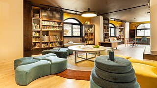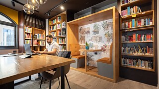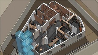 Nach dem Leerräumen der Bibliothek und der Unterbringung der Medien in einem Nachbarhaus im August 2020 erfolgten im November 2020 die ersten Arbeiten. Seitdem tauschen sich das für die Neukonzeption zusammengestellte Team sowie der lokale Architekt über Zoom mit dem aatvos Team aus. Welche Materialien, welche Fliesen, welche Farben; Jedes Detail wird genau im Blick behalten, um Konzept und Moodboard basierend auf der Nutzerbefragung des Vorjahres optimal umzusetzen. Doch was beinhaltet das Bibliothekskonzept eines dritten Ortes? Es soll ein Ort entstehen, der sich für jeden wie zu Hause anfühlt und jeden willkommen heißt. Dabei geht es nicht nur um die Bibliothek im ersten Stock, sondern auch um den Eingangsbereich im Erdgeschoss, in dem sich die Sprachabteilung und mehrere Büros befinden. Dieser Bereich wird im Anschluss an die Bauarbeiten in der Bibliothek umgestaltet, der Raum soll geöffnet und sozusagen deinstitutionalisiert. Geplant sind hier ein großer Community Tisch, ein Café und Platz für weitere Medien zum Thema Sprache, Länder und Regionen.