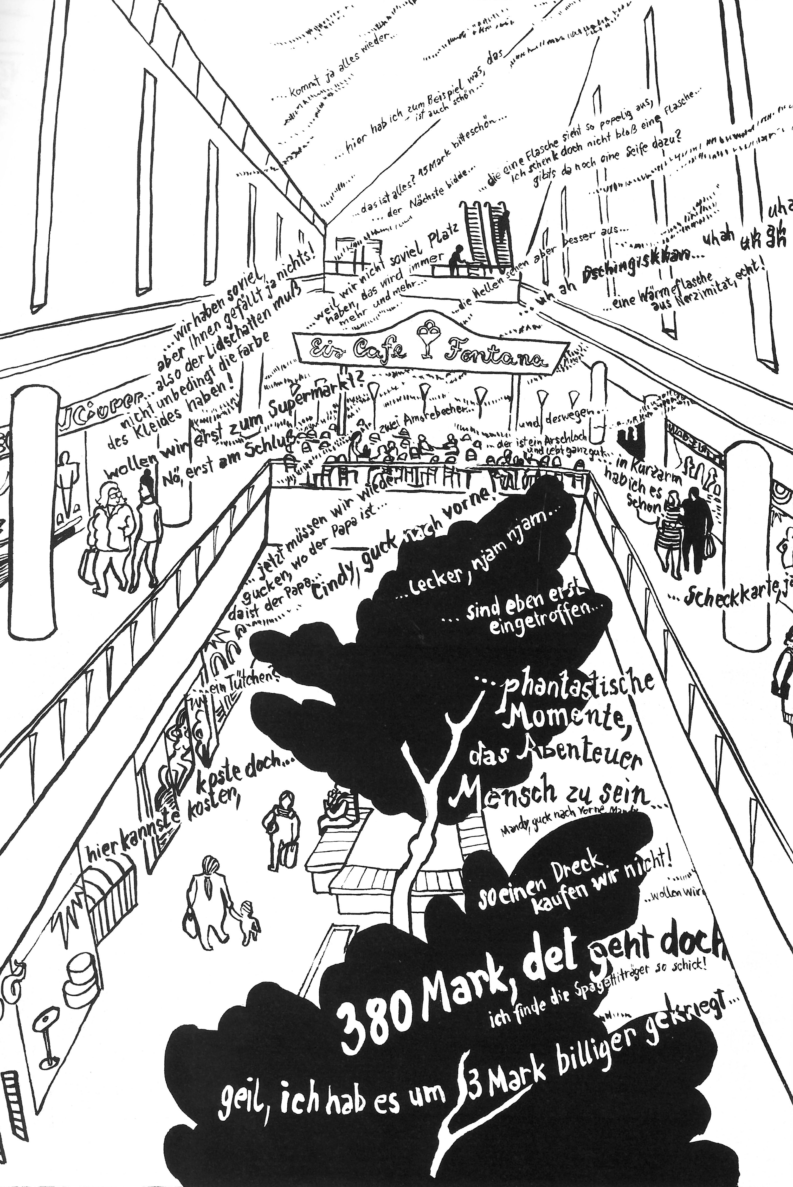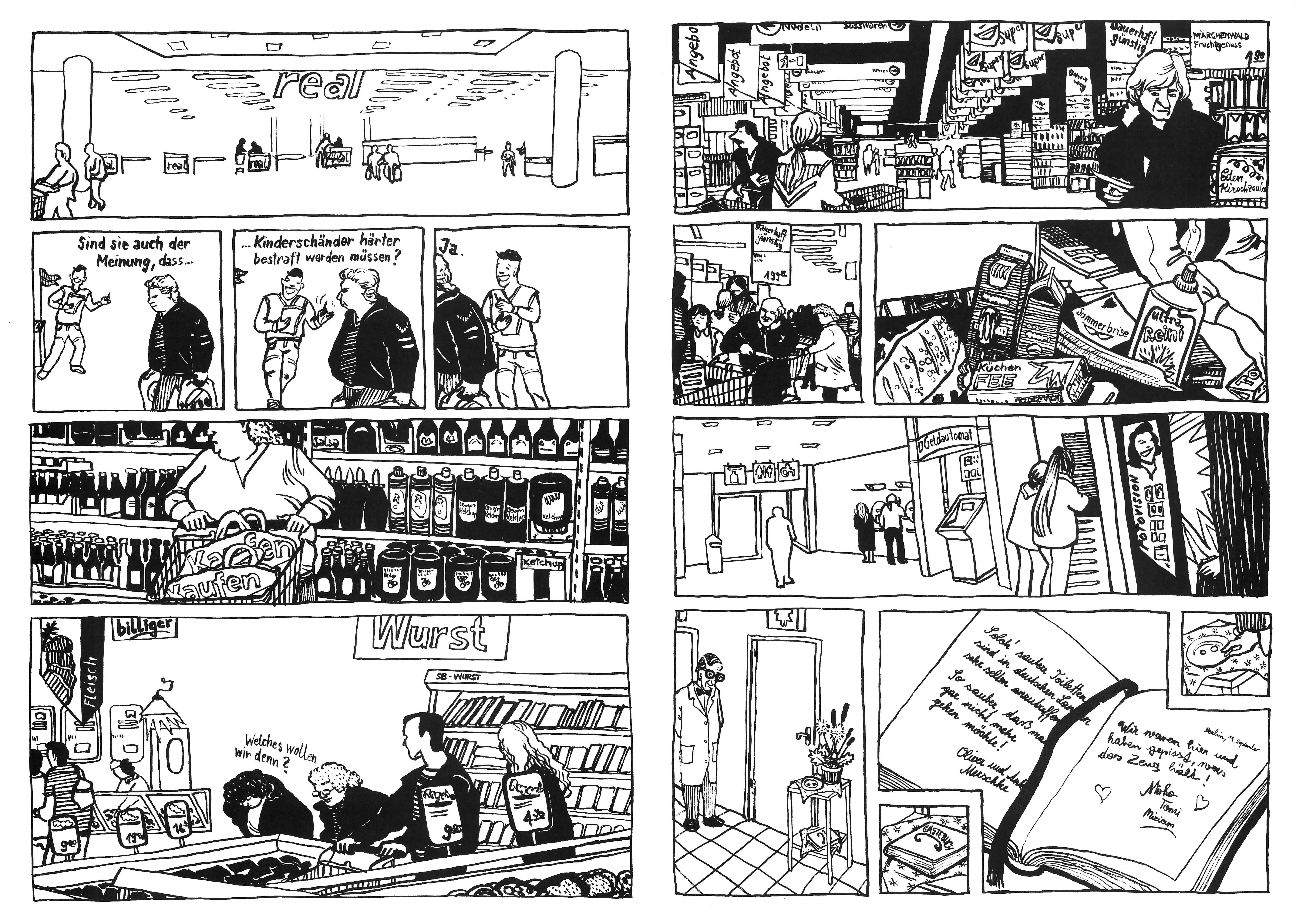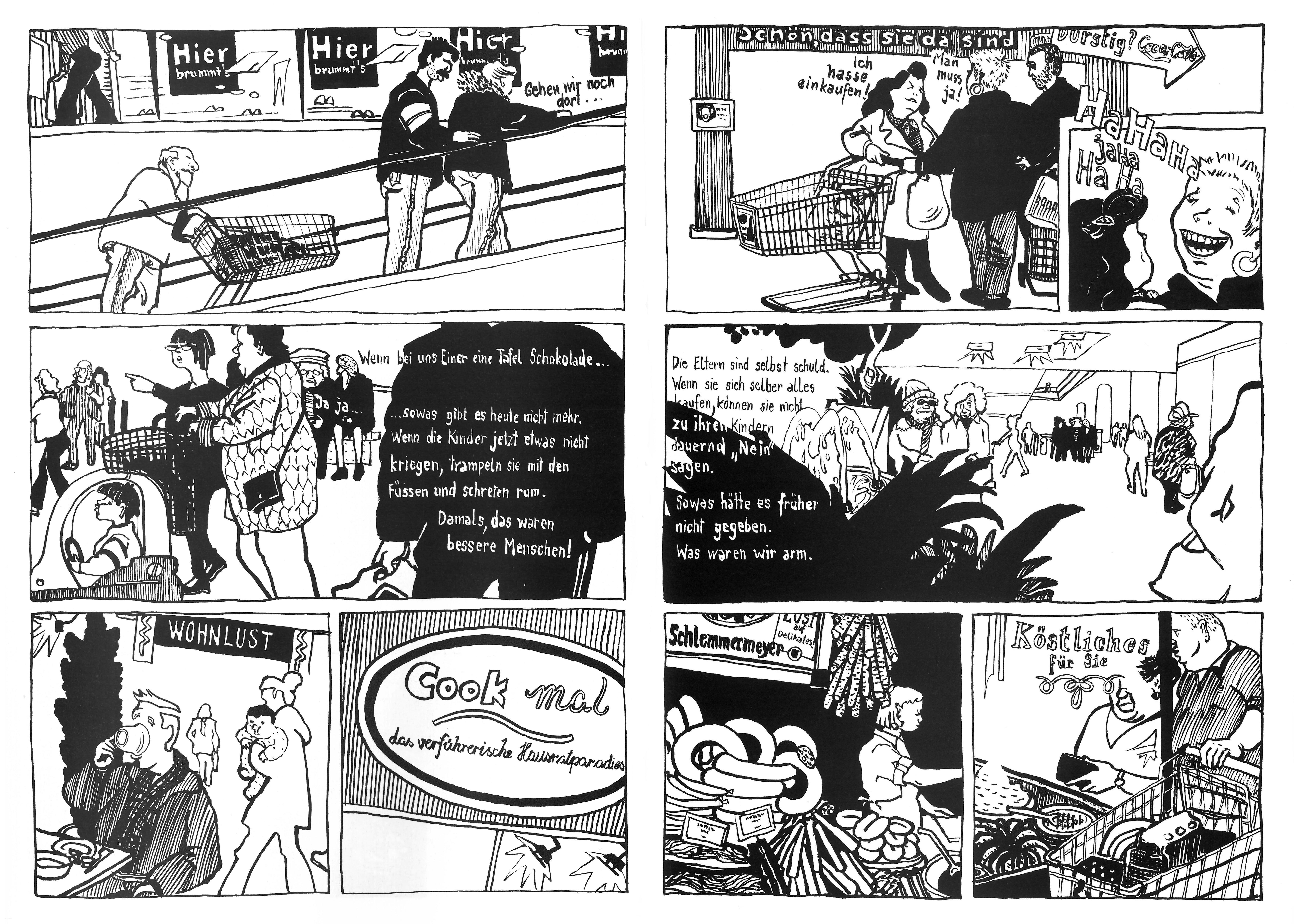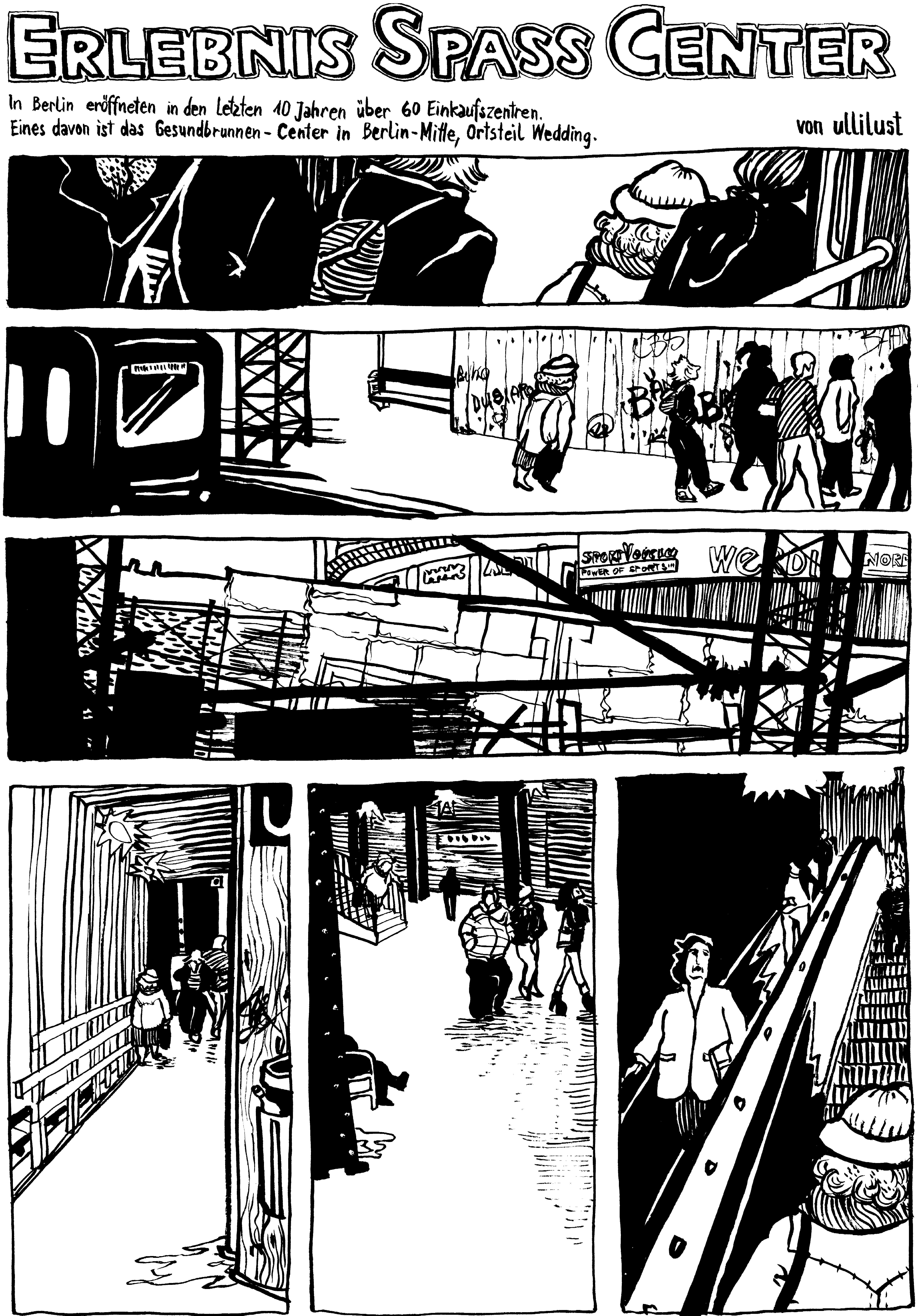 Ulli Lust studierte in Berlin mit vielen, die jetzt Rang und Namen haben: Mawil, Kai Pfeiffer, Tim Dinter, Jens Harder. Mit ihnen gründet sie die Comicgruppe Monogatari, die schon während des Studiums Comicreportagen herausbringt. „Alltagsspionage“ heißt einer dieser Bände, der 2001 erscheint. Lust hat darin zwei Geschichten veröffentlicht. Sie zeigen, wie sich die Wienerin die Stadt mit all ihren Befremdlichkeiten angeeignet hat: zeichnend.