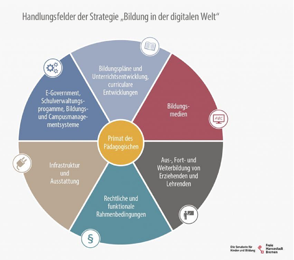 - Digital gestützte Gestaltung von Lehr- und Lernprozessen. Hierbei geht es um die pädagogisch fundierte Einbeziehung der Potenziale digitaler Medien und Bearbeitungsmöglichkeiten (vgl. KMK 2016).